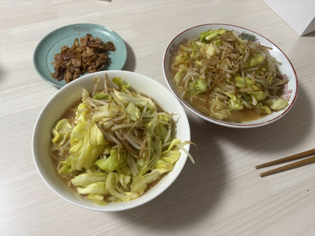 • 夜:野菜モリモリラーメン、2日前のおかずの残り